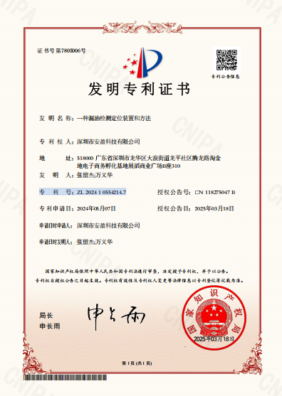 3月18日消息,深圳市安盈科技有限公司收到由中華人民共和國國家知識產(chǎn)權局頒發(fā)的一項《發(fā)明專利證書》,安盈科技自主研發(fā)的漏油監(jiān)測系統(tǒng)——“一種漏油檢測定位裝置和方法”榮獲國家發(fā)明專利,專利號:ZL 2024 1 0554214.7。這一成果標志著安盈科技在工業(yè)安全監(jiān)測技術領域的領先地位,也為行業(yè)漏液監(jiān)測提供了創(chuàng)新解決方案。...
